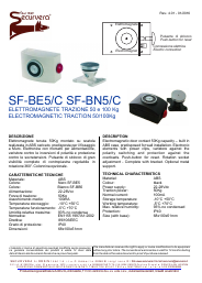 SF-BE5 Fermo elettromagnetico blocca porta (per porte tagliafuoco R.E.I.). Forza di trazione 50 kg. Protetto contro le sovratensioni, e le inversioni di polarità. Collegamento con morsetti polarizzati. Pulsante rosso di sblocco. Predisposto per installazione a parete, oppure a pavimento tramite supporti SF-ST1 o SF-STQ. Completo di contropiastra regolabile a 360°. Contenitore Bianco in PAE. Alimentazione 24 Vcc. Assorbimento 50 mA. Protezione IP40. Dimensioni L70XH100XP52 mm. Peso 545 gr. EN 155 SF-BN5 Fermo elettromagnetico blocca porta. Forza 50 kg. Contenitore Nero in PAE. Le rimanenti caratteristiche sono identiche al fermo elettromagnetico SF-BE5. EN 155 SF-B5C Fermo elettromagnetico blocca porta (per porte tagliafuoco R.E.I.). Forza di trazione 100 Kg. Pulsante rosso di sblocco. Contenitore Bianco in PAE. Dimensioni L72XH105XP52 mm. Peso 920 gr. Le rimanenti caratteristiche sono come SF-BE5 SF-BNC Fermo elettromagnetico blocca porta (per porte tagliafuoco R.E.I.). Forza di trazione 100 Kg. Pulsante rosso di sblocco. Contenitore Nero in PAE. Dimensioni L72XH105XP52 mm. Peso 920 gr. Le rimanenti caratteristiche sono come SF-BE5 SF-ST1 Contropiastra da pavimento per SF-BE5 e SF-B5Q. Struttura in acciaio con verniciatura epossidica colore grigio chiaro altezza 100 mm. Foratura di fissaggio. SF-STQ Contropiastra da parete per SF-BE5 e SF-B5Q. Le rimanenti caratteristiche sono identiche a SF-ST1. Altezza regolabile da 150 a 250 mm. Foratura di fissaggio. |